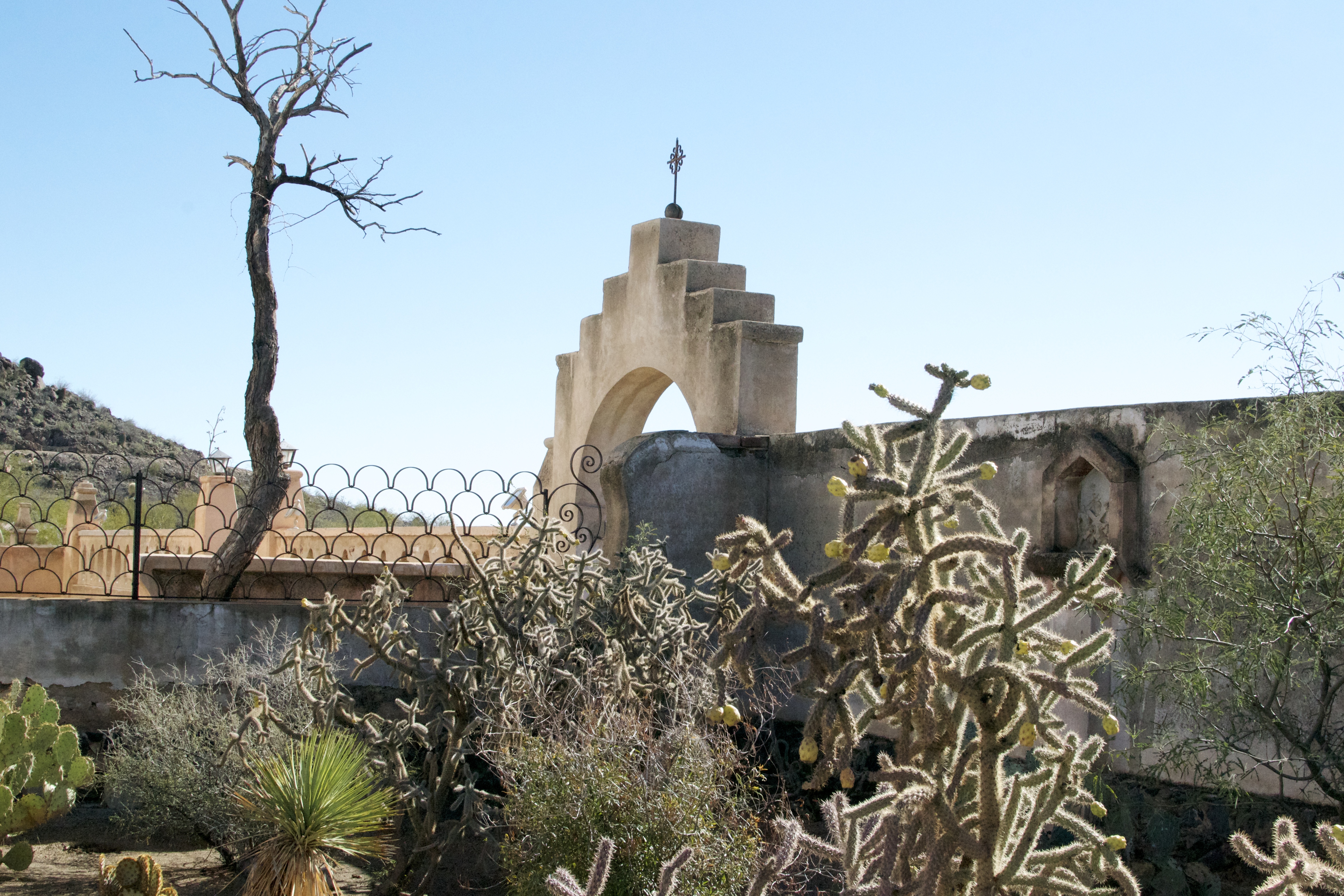 All of the pictures taken above were just from the entrance. I started walking toward the front of the church and felt a little uncomfortable..I took one more picture and nudged Kiah, “Let’s get out of here”. She completely agreed..San Xavier is a functioning church. No, there was not a church service going on at the time but there were a handful of people paying respects, lighting candles, leaving flowers and sitting in the pews (I think that’s what the benches are called?) with sullen expressions and full of emotions. I was there for the history, the art, the architecture and felt like I was intruding on these peoples and their special moments.