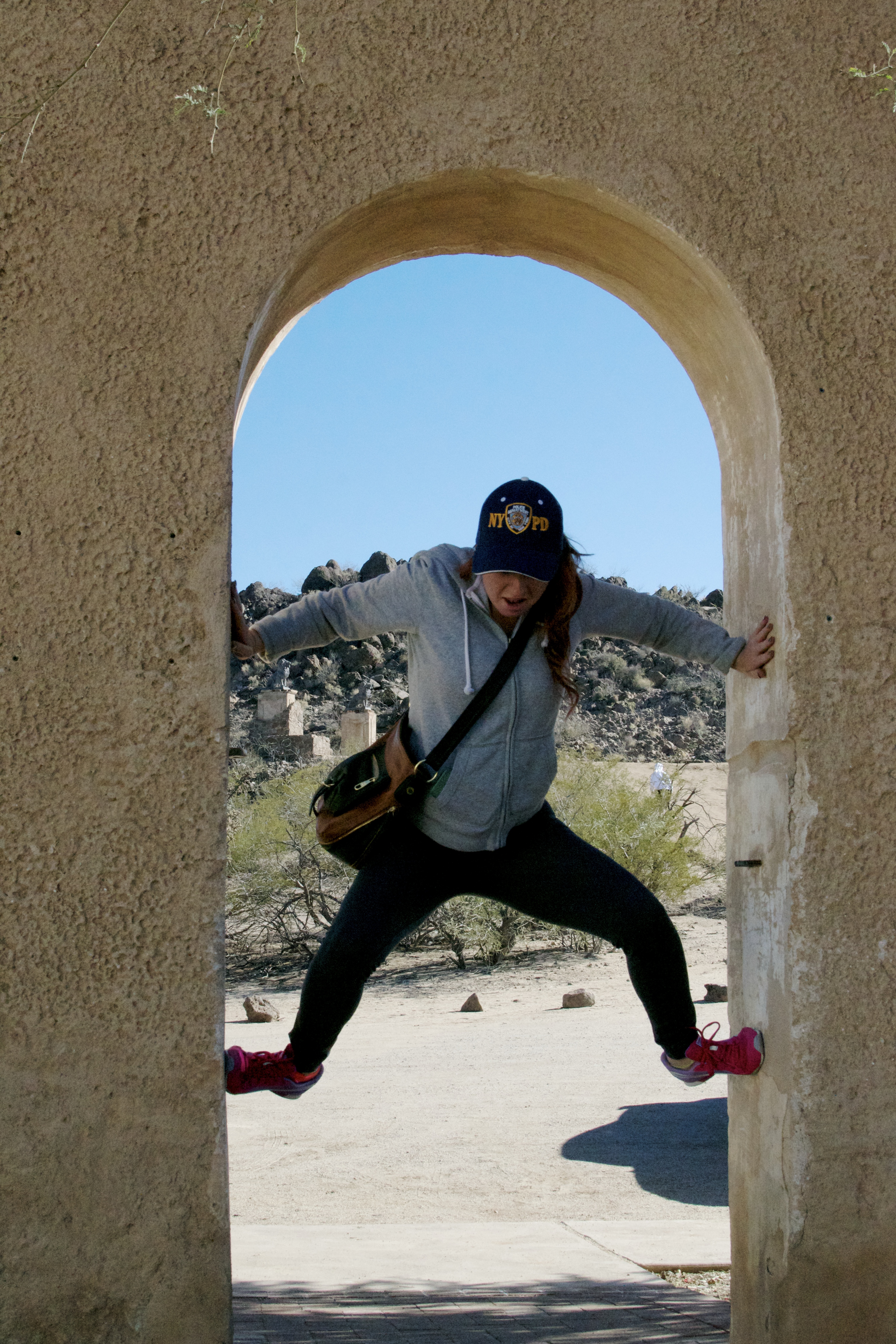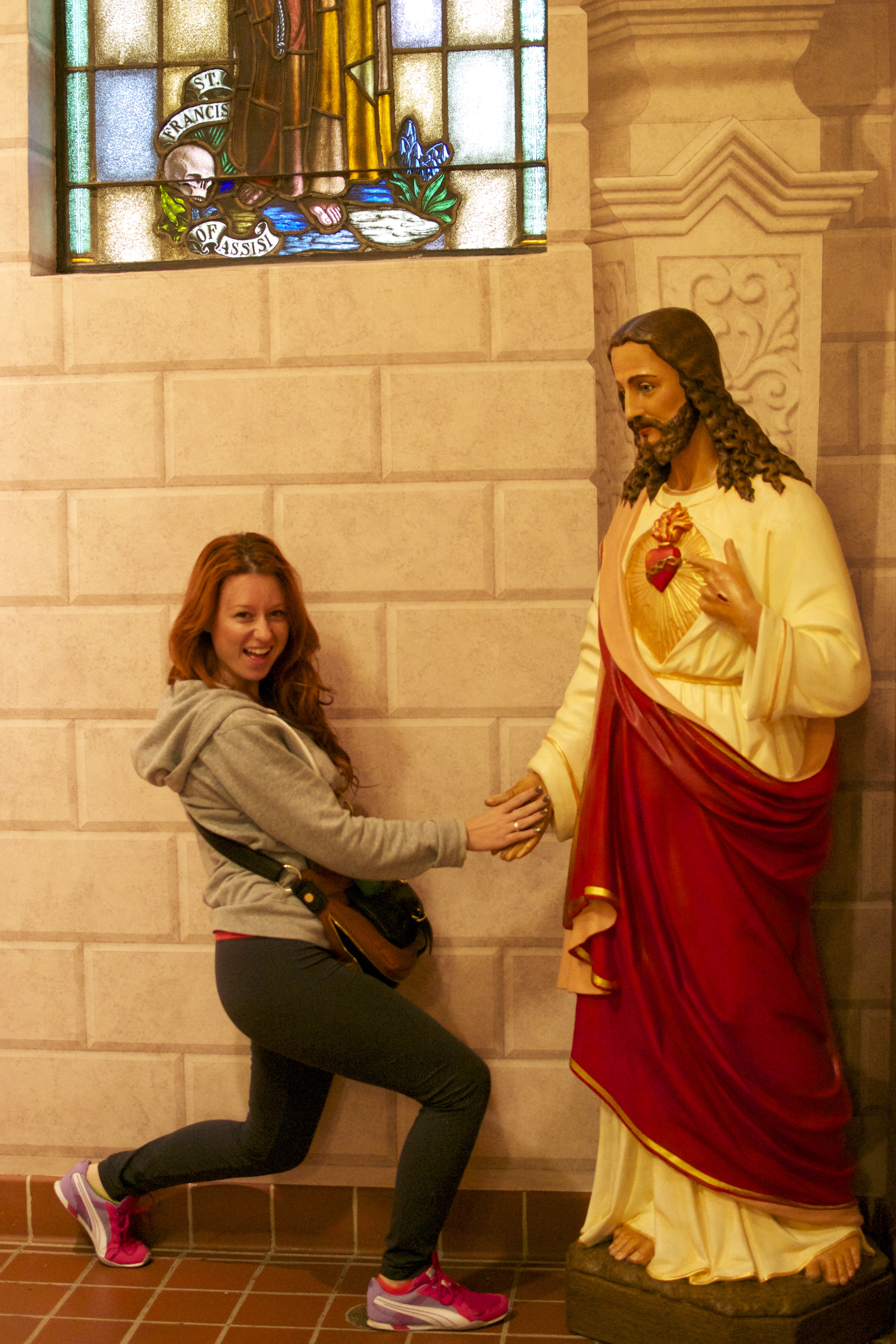 To the east of the missionary is a hill with a cross on the very top. Before take the little walk up the hill…someone has to stop and be silly..