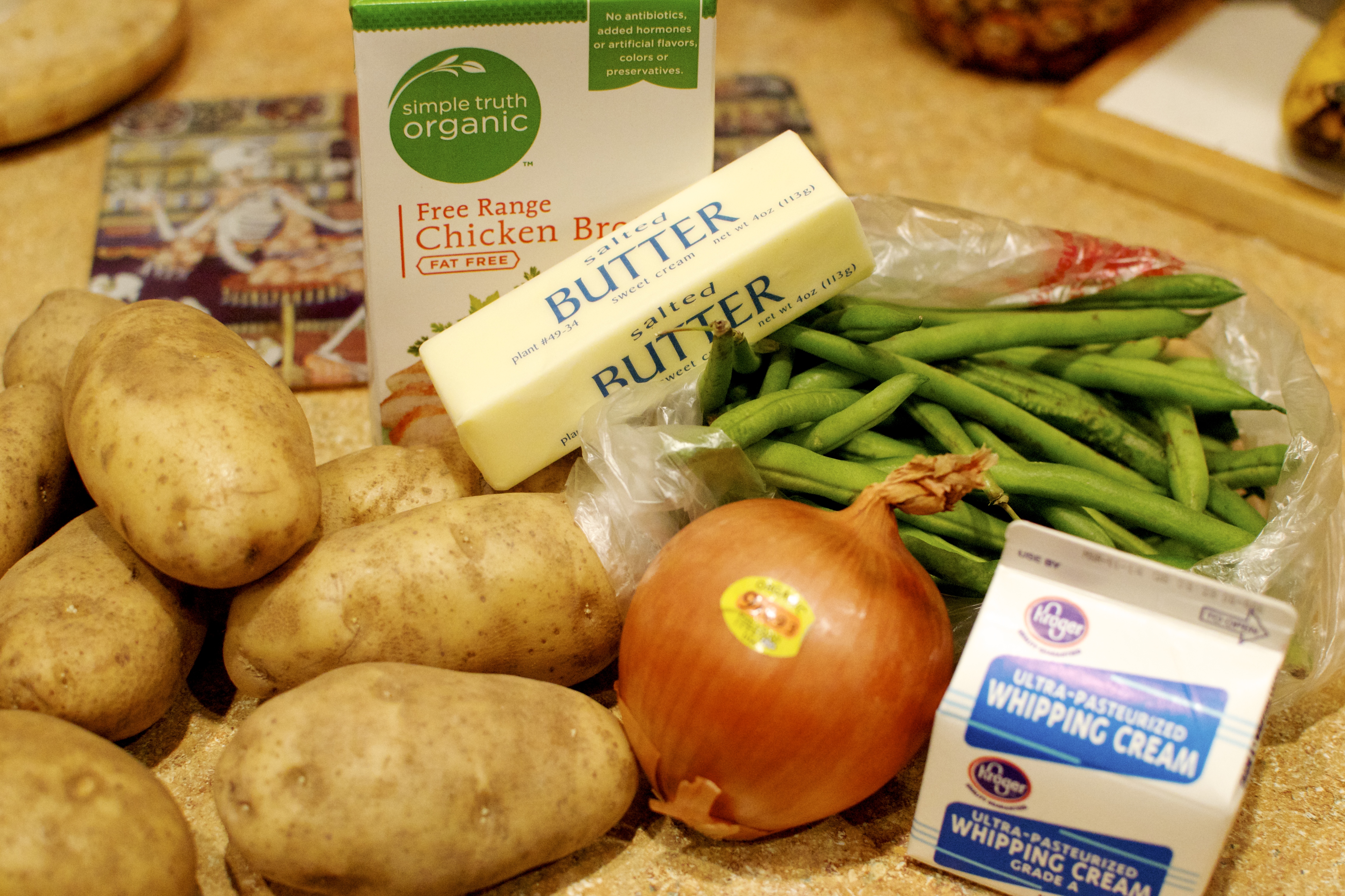 I got home around 17:30, unwrapped the meat, set the meat in the cast iron pan (I was told setting the meat in a metal pan helps defrost meat faster) and waited and waited and waited. While I was waiting, I set the produce and what not on the counter, washed up the potatoes, cut them up and threw them in a pan.