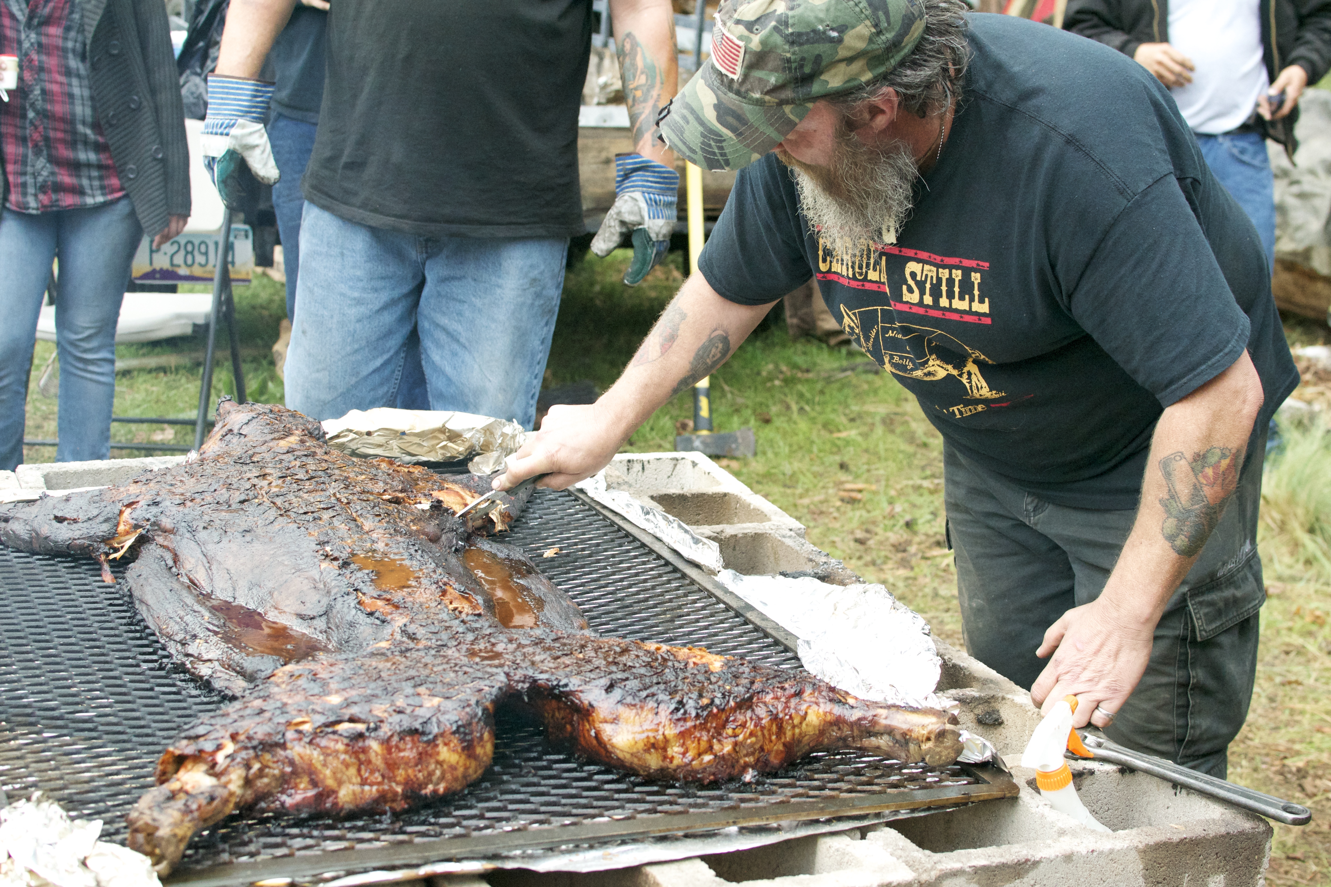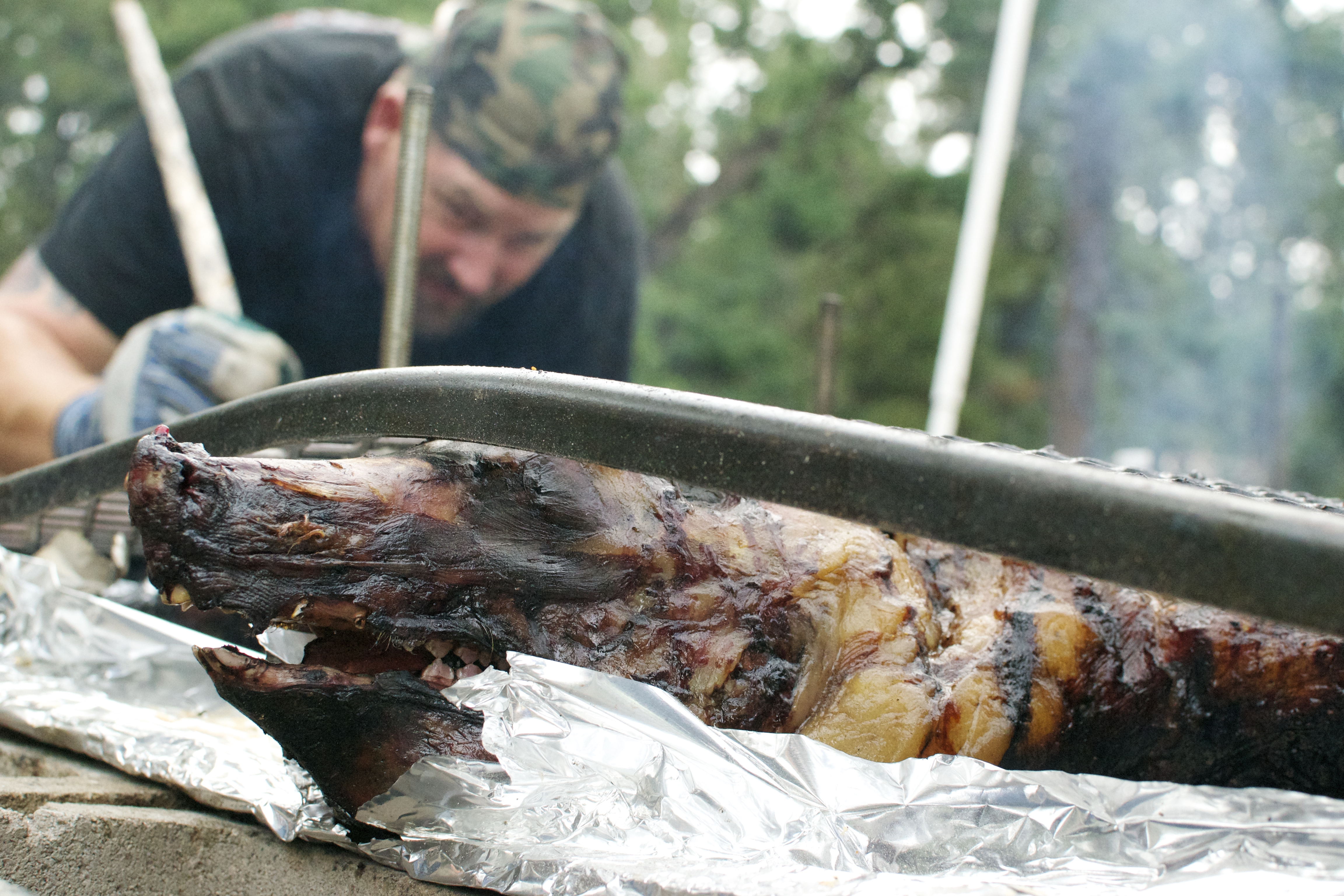 This year, someone bought a live pig, raised it, slaughtered it and brought it to camp for a pig roast.