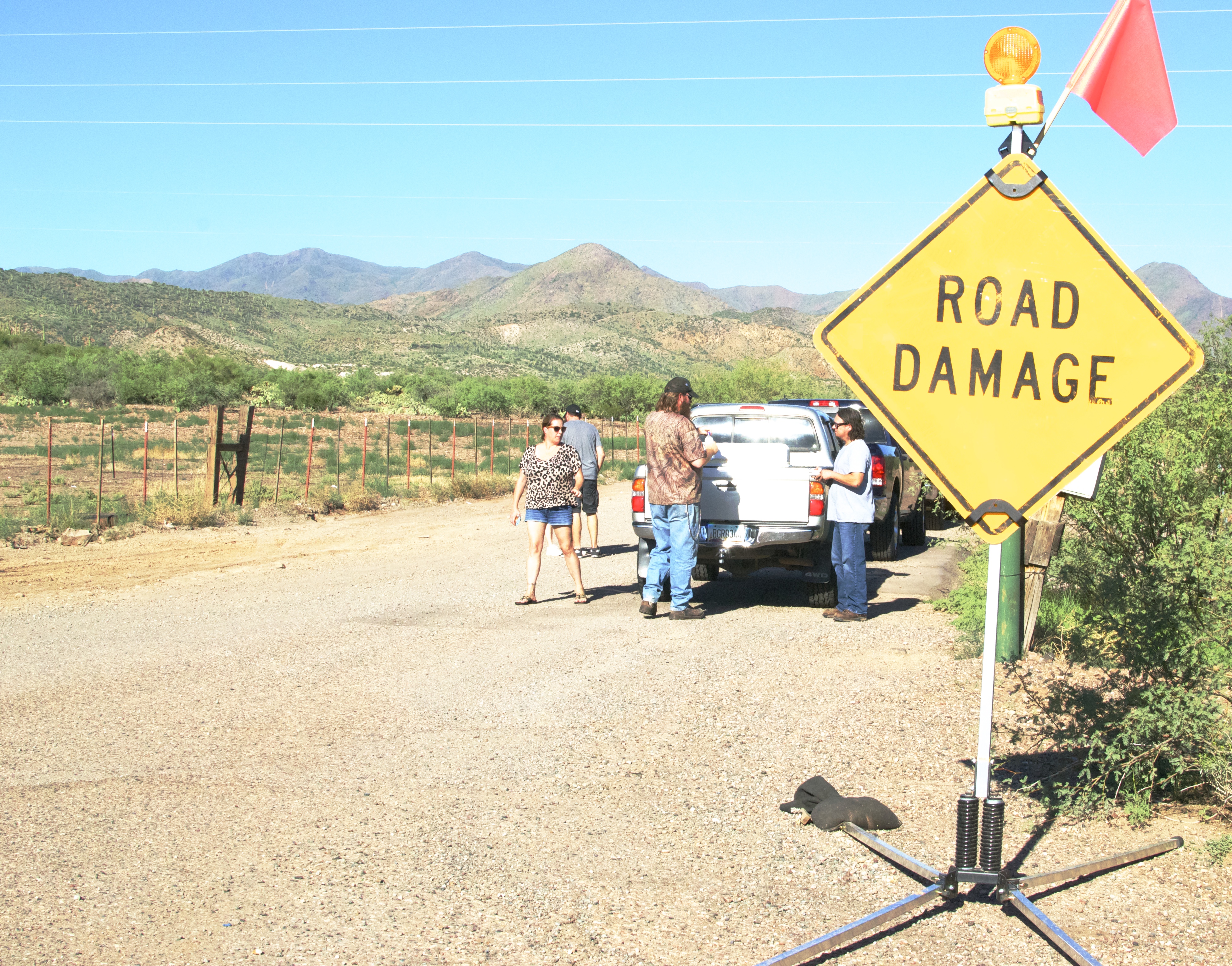 Back to our road! We met up and traveled east..passed through a rickety fence and as we passed by I see another warning. ROAD IMPASSABLE. Still..we continued on..